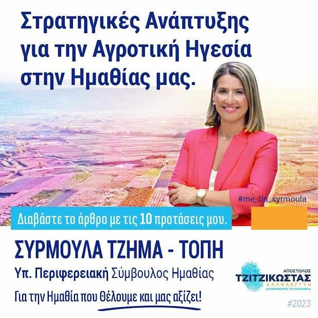 Μερικές εβδομάδες νωρίτερα είχα δεσμευτεί δημόσια απέναντί σας ότι η υποψηφιότητά μου είχε ένα και μόνο σκοπό. Τη συνεισφορά μου στην παράταξη ‘ΑΛΛΗΛΕΓΓΥΗ’ του Περιφερειάρχη Κεντρικής Μακεδονίας, Απόστολου Τζιτζικώστα, μέσω συγκεκριμένων προτάσεων που θα αποτελέσουν μέρος ενός συγκροτημένου σχεδίου που θα βελτιώσει τη ζωή των ανθρώπων της Ημαθίας και θα εξασφαλίσει ένα καλύτερο αύριο για τα παιδιά μας.